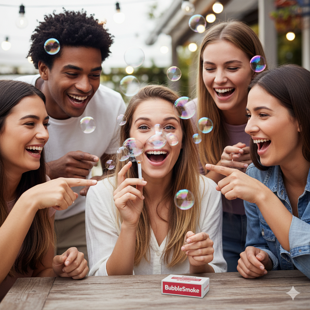 Le das una calada y soplas, pero en lugar de humo, de repente burbujas de jabón flotan en el aire. ¿La reacción? Primero confusión, luego risas, y después todos quieren probarlo. Así te conviertes en la estrella de la noche.